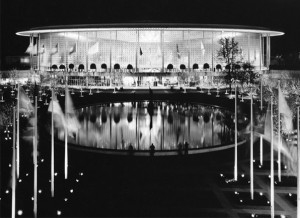Edward Durell Stone is no longer a household name, though Mary Ann Hunting’s painstaking biography of this popular American architect of the post-war period re-informs us of his prior esteem. Stone nurtured his career with Beaux Arts training and a traveling European scholarship. It is neat that his direct contact with both the emerging international style and antiquity at an impressionable age resulted in such a romantic hybrid of the modernist and classical aesthetic in his later career. A preamble through Stone’s early work includes lovely drawings and photographs of authentic white modernist houses, a refreshing combination of works for wealthy patrons and low-budget architecture for mass consumption: plans sold in lifestyle magazines for 3 dollars a pop.
