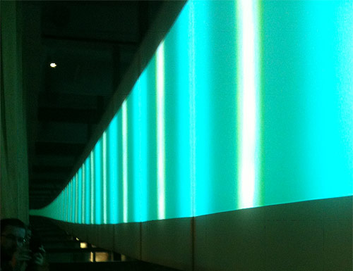 At the Whitechapel Gallery, mirrors placed at angles to each other neatly divide abstract films into simple topographical parts. Here the mirror is a literary device: it changes the narrative of the film, a further level of abstraction. It is also practical device for slicing and rearranging the coloured light of the projection.